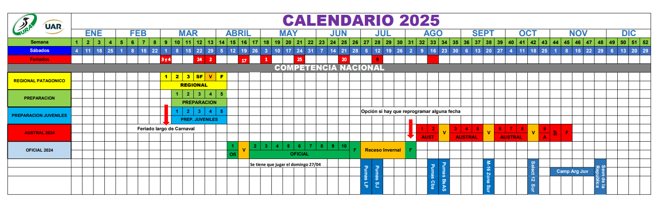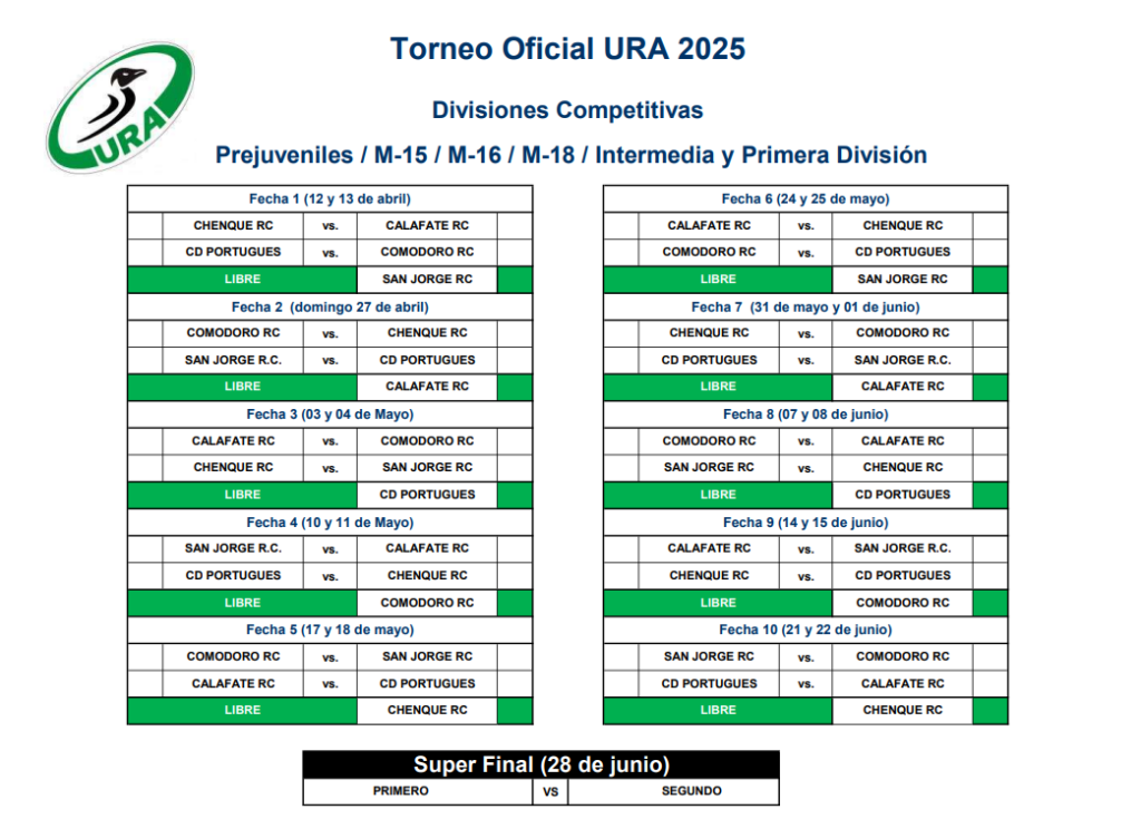 La Unión de Rugby Austral (URA) ha anunciado el calendario para la temporada 2025, destacando el Torneo Preparación como el primer desafío del año. Este certamen, que reúne a los mejores equipos de la región, se disputará en dos zonas y contará con la participación de siete equipos