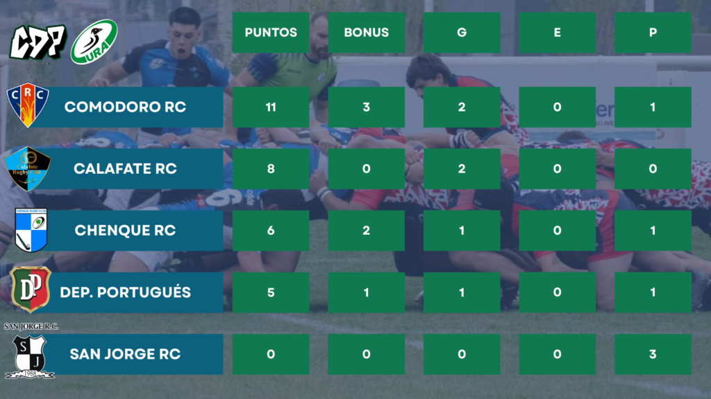 San Jorge RC no jugará esta fecha. Las posiciones de la categoría Primera son las siguientes: