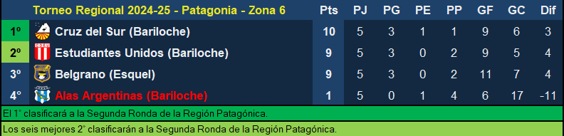 Continuamos con Estudiantes Unidos de Bariloche que debe enfrentarse como local con Cruz del Sur, en lo que será un duelo directo, el segundo contra el primero. El partido más destacado de esta Zona 6, además del partido entre Belgrano de Esquel y Alas Argentinas (que ya está eliminado).