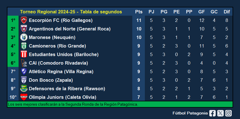 ¿Por qué decimos esto? Porque necesita clasificar entre los seis mejores segundos entre todos los equipos de la Región Patagónica.