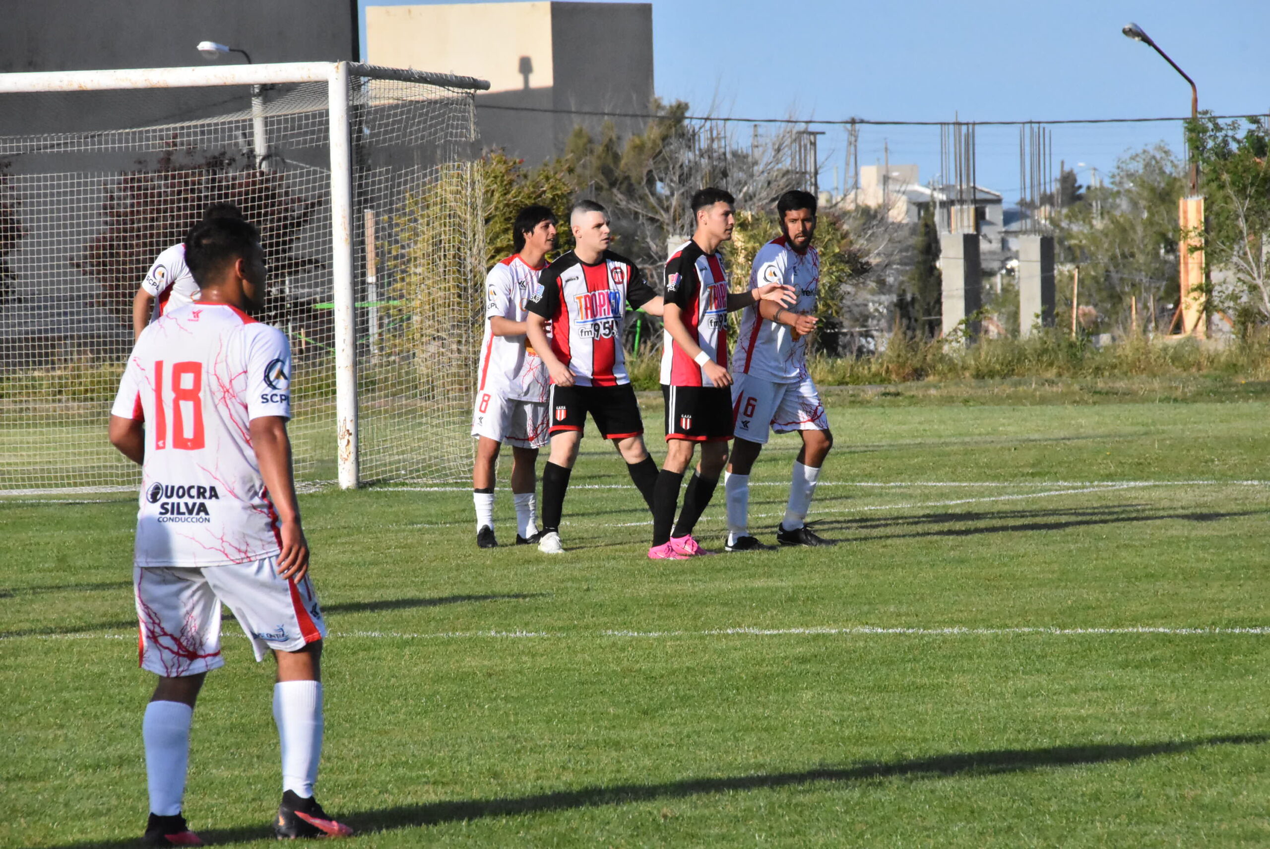 La chance más clara llegó para los dirigidos por Matías Tatángelo, en apenas 3 minutos con un lateral desde la derecha, recibió dentro del área Pablo Soda, apenas se perfiló metió el centro y Franco Domínguez cabeceó la pelota que terminó pegando en el travesaño.